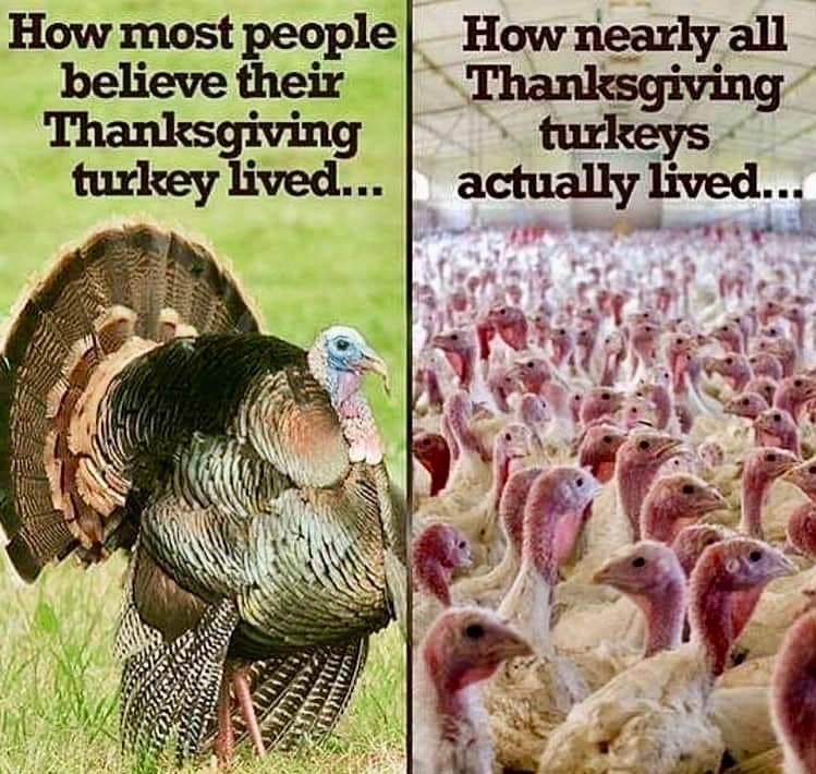 We might not have malicious intent, but if turkeys could talk, how likely is it that they wouldn’t describe us as merciless crusaders out for blood?! They’ve seen and experienced too much, witnessing systematized brutality of their kin at unfathomable scales, and taken their ghastly traumas with them to their early graves- first in our bellies, then back to Earth where the energy of pain & fear floods our collective reality.