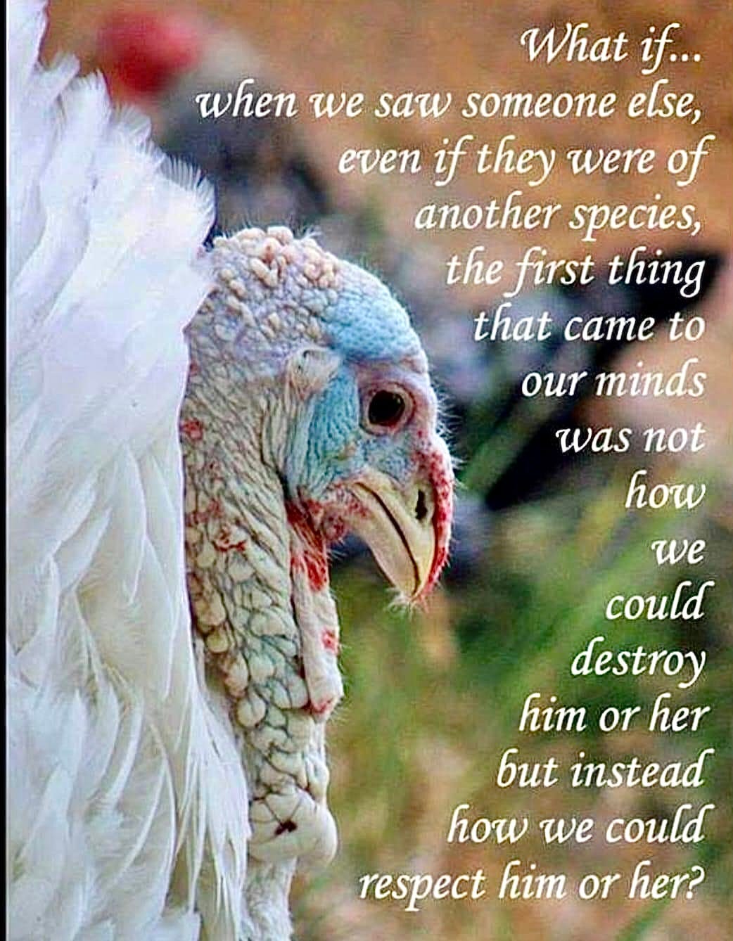 We can do this by activating dormant empathy, just as the 46 million slain turkeys would have us do if they had the ability to make us aware of our shared sovereignty.